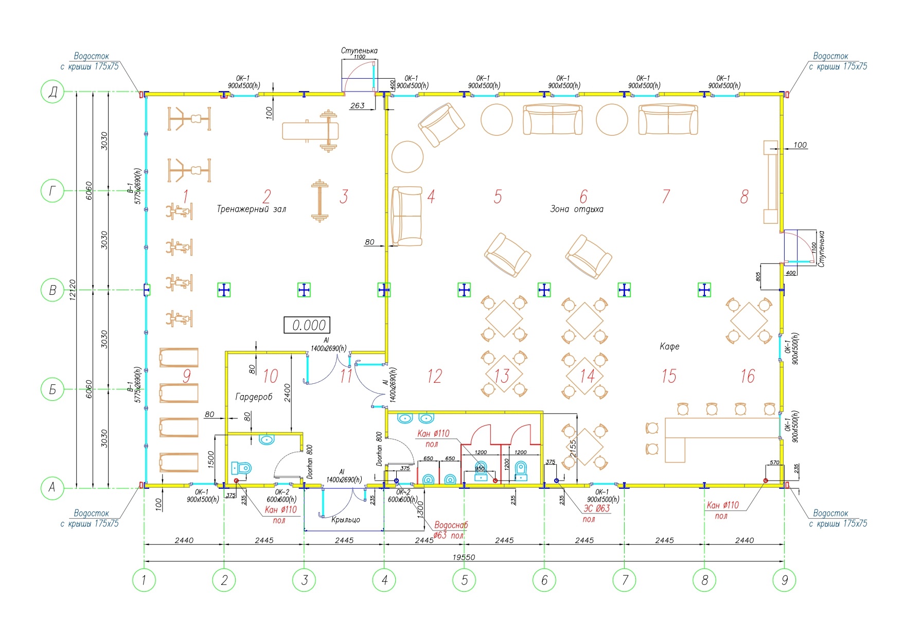 В здании заказчик планирует разместить тренажерный зал, кафе и кинотеатр. Здание состоит из 16 модулей "Звезда" с высотой потолков 2,7 метра. Общая плоская кровля с скрытой системой водостока. Клуб оборудован системой отопления, кондиционирования, пожарной сигнализацией, СКУД.